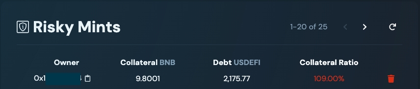 Следить за состоянием протокола и статусом кредитов в системе можно через раздел "Risky Mints", который в режиме реального времени предоставляет данные о состоянии всех активных кредитов.