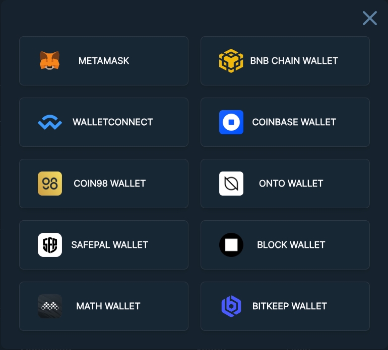 Выберите кошелек из списка предложенных вариантов. Протокол DCNTRL поддерживает различные кошельки, включая MetaMask, Trust Wallet и Binance Chain Wallet.